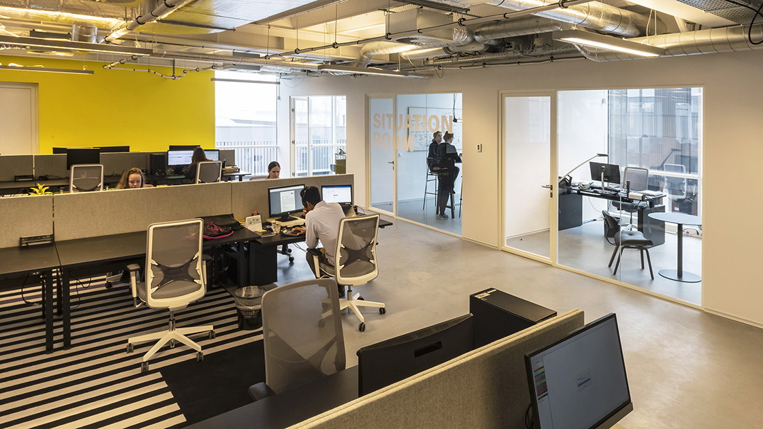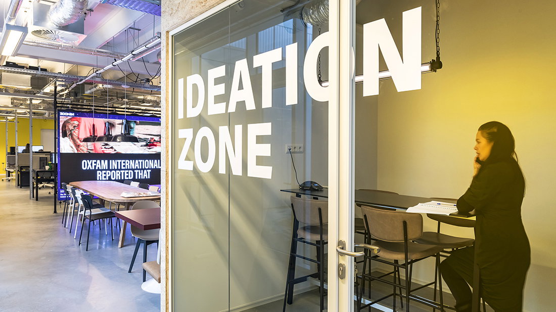 Het contrast vanuit het donkere en krappe pakhuis waar Zoomin. TV eerder gehuisvest was naar deze open ruimte met veel licht enuitzicht kon niet groter zijn.